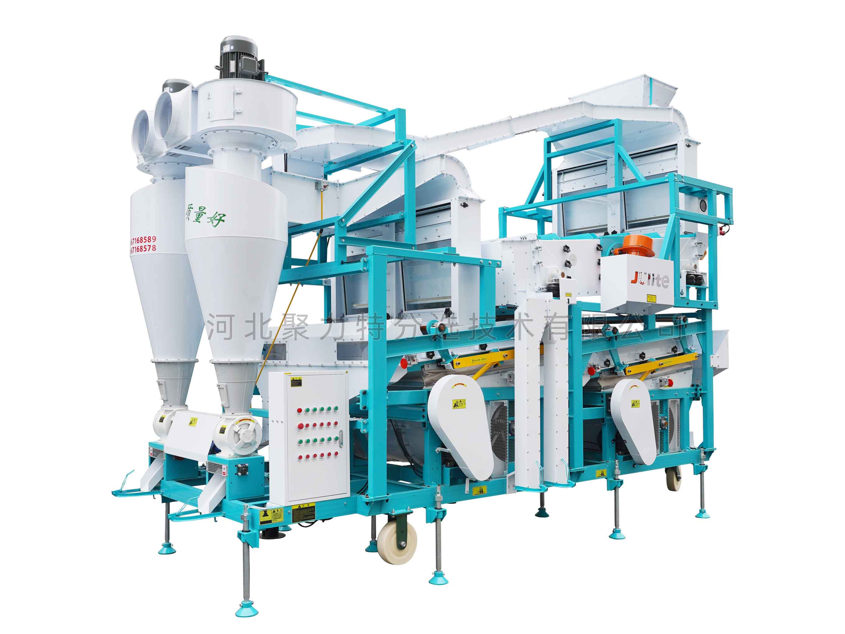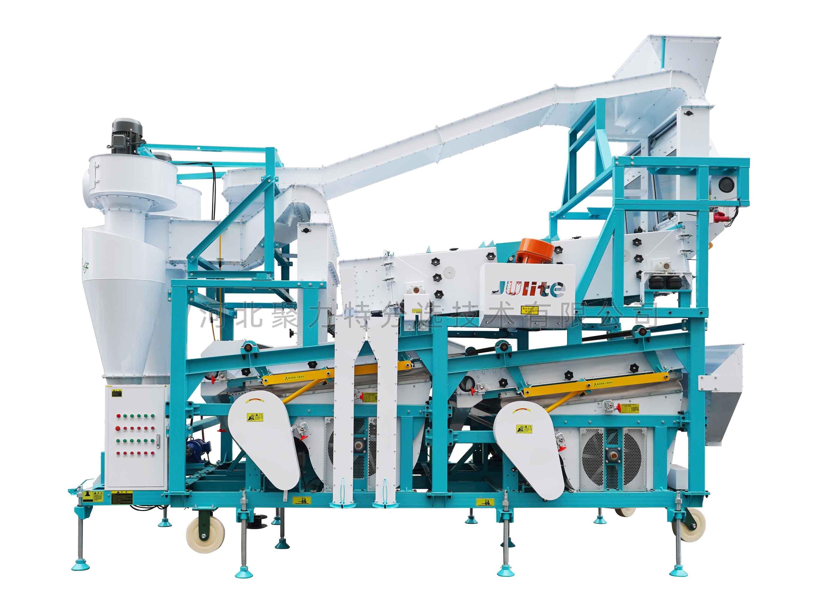 3、前后風篩配置獨立的旋風除塵器和風機,調(diào)控方便,操作靈活,加工過程除塵環(huán)保;
